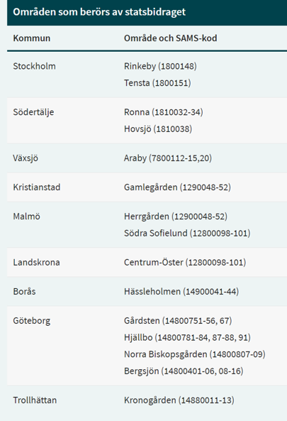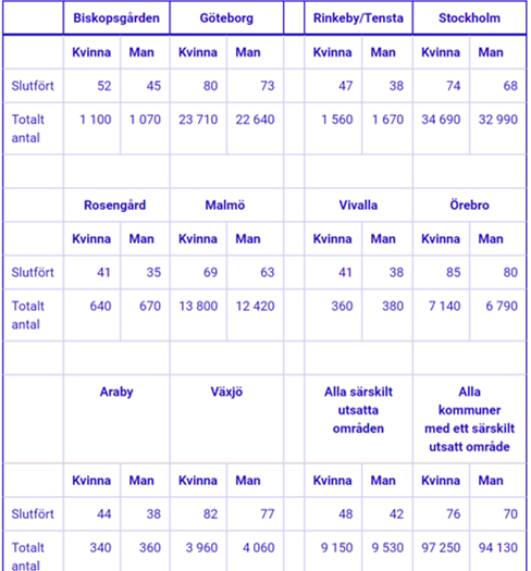 Jag tar scbs statistik på Biskopsgården, Rinkeby-Kista, Rosengård, Araby och Vivalla.