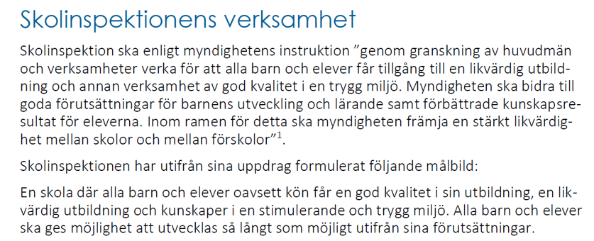 I detta inlägg kommer jag benämna skolinspektionen som SI eller skolinspektionen.