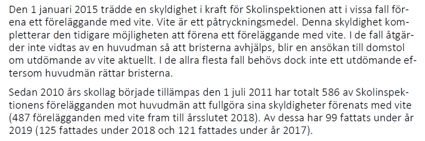 Hade det inte varit bättre att huvudmän, istället för att betala vite till skolinspektionen åläggas att ge rektorn på den aktuella skolan de resurser de behöver för att rätta till bristerna?