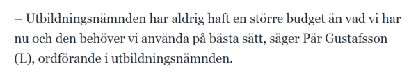 Ordföranden i utbildningsnämnden är Liberal och i GP 21/1 2020 gör han följande uttalande;