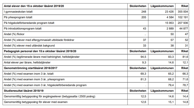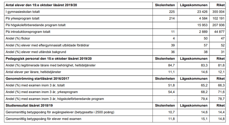 Det är ett svårt elevunderlag, det är bara 39 % av eleverna som har föräldrar med eftergymnasial utbildning. Det är en av de faktorerna som påverkar elevernas måluppfyllelse allra mest. Kolla fördelningen av flickor/pojkar och kolla andelen elever med utländsk bakgrund. Dessa är faktorer som vi vet gör det svårare för elever att klara skolan med fullständiga betyg. Hur ser det ut på enhet 2 och 3?