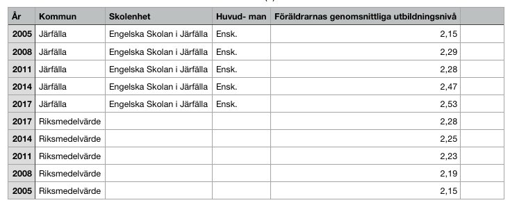 Marcus Larsson la upp en bild på statistik på twitter när det var en diskussion om att IES i Järfälla hade vänt resultaten. Det visade sig att, ja de har vänt resultaten på skolan men det de främst hade gjort var att byta ut elevunderlaget. Titta här så ser du hur andelen föräldrar med eftergymnasial utbildning ökade på IES i Järfälla. Vi vet sedan länge att den faktor som främst påverkar elevernas resultat är föräldrarnas utbildningsbakgrund.