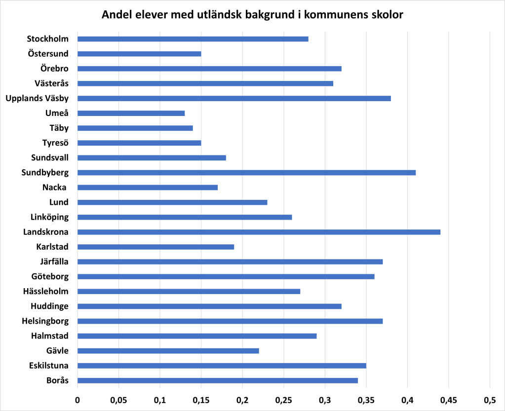 I kommunala skolor är det 26 procent elever med utländsk bakgrund.