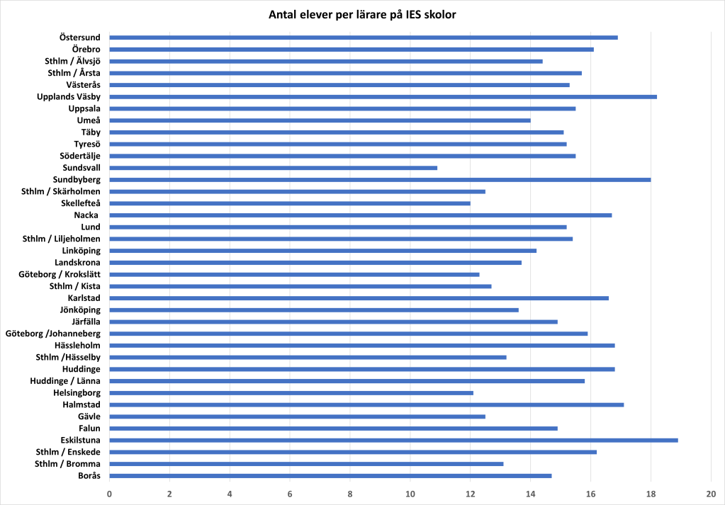 En annan faktor som påverkar lönsamheten på IES skolor är antalet elever per lärare. Där ligger IES högt i de allra flesta kommuner. Det betyder att de kan sänka den genomsnittliga undervisningskostnaden per elev och skapa överskott på varje skolpeng.