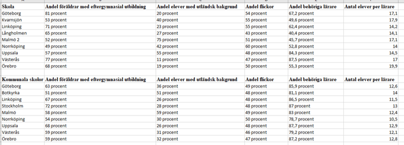 – Ha lägre andel behöriga lärare än de kommunala skolorna
